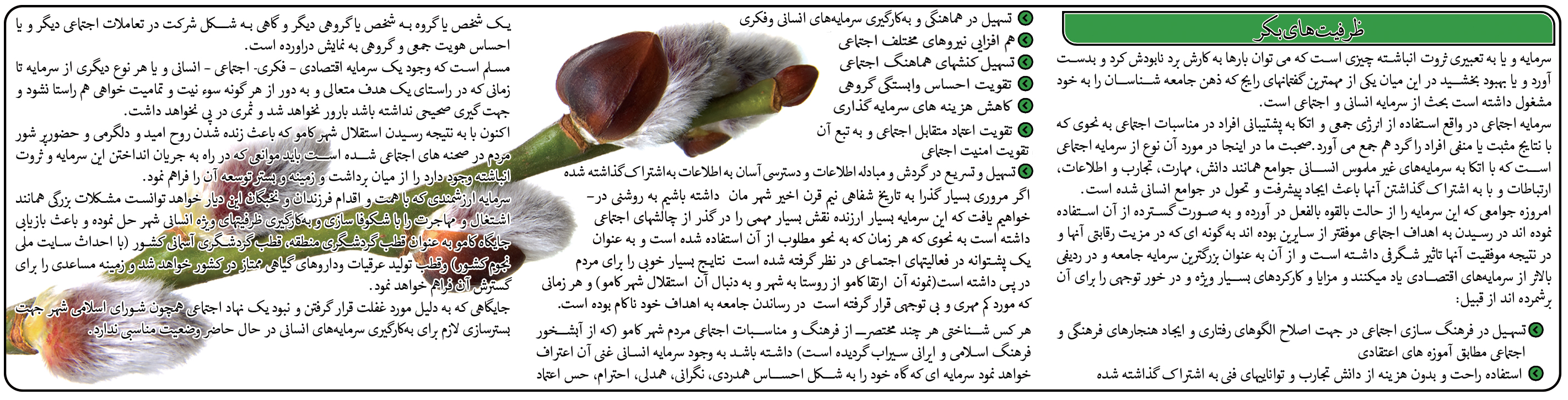 جایگاهی که به دلیل مورد غفلت قرار گرفتن و نبود یک نهاد اجتماعی همچون شورای اسلامی شهر جهت بسترسازی لازم برای به‌کارگیری سرمایه‌های انسانی در حال حاضر وضعیت مناسبی ندارد.