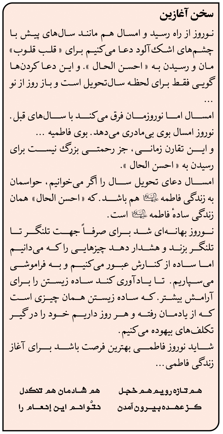 شاید نوروز فاطمی بهترین فرصت باشد برای آغاز زندگی فاطمی...